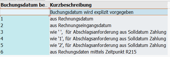 Wenn Sie für die Bestimmung des Buchungsdatums die Variante ' ', '1' oder '2' gewählt haben, so werden Abschlagsanforderungen bzw. Vorauszahlungen wie Rechnungen behandelt, d.h. das Buchungsdatum für Abschlagsanforderungen bzw. Vorauszahlungen wird grundsätzlich nicht aus dem Solldatum der Zahlung bestimmt.