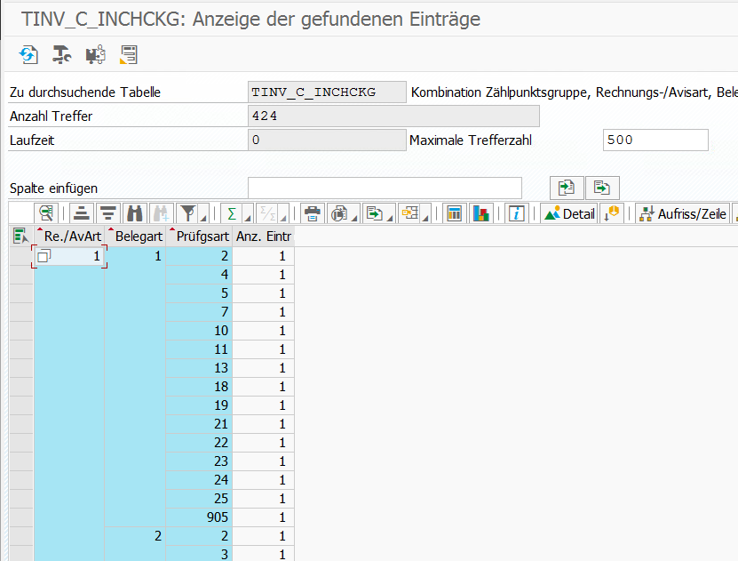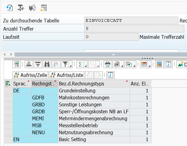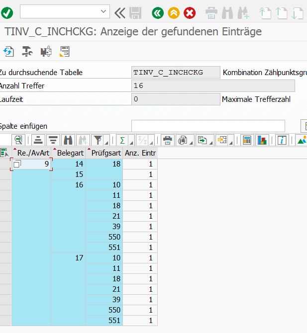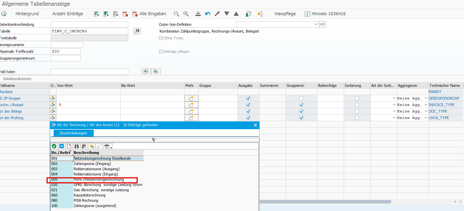 SE 16H TINV_C_INCHCKG - Kombination Zählpunktsgruppe, Rechnungs-/Avisart, Belegart
