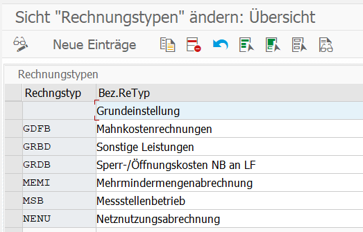 SPRO → Branchenkomponente Versorgungsindustrie → Unternehmensübergreifender Datenaustausch → Rechnungs-/Avisbearbeitung → Grundeinstellungen vornehmen ("In Dialog Struktur Zul. Zeilenart je Rechnungsart auswählen")