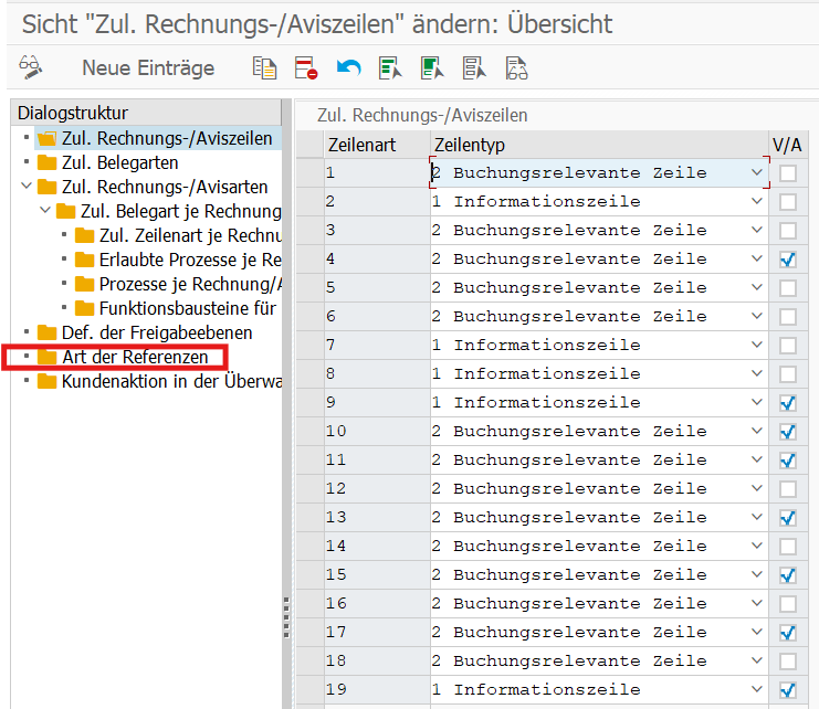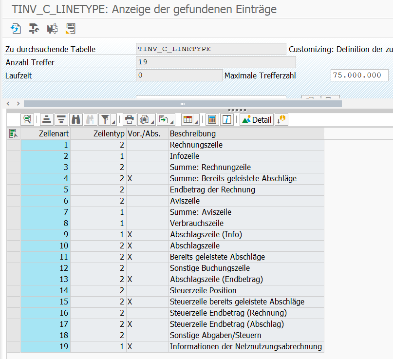 SE16H Tabelle TINV_C_LINETYPE Customizing: Definition der zulässigen Rechnungszeilen