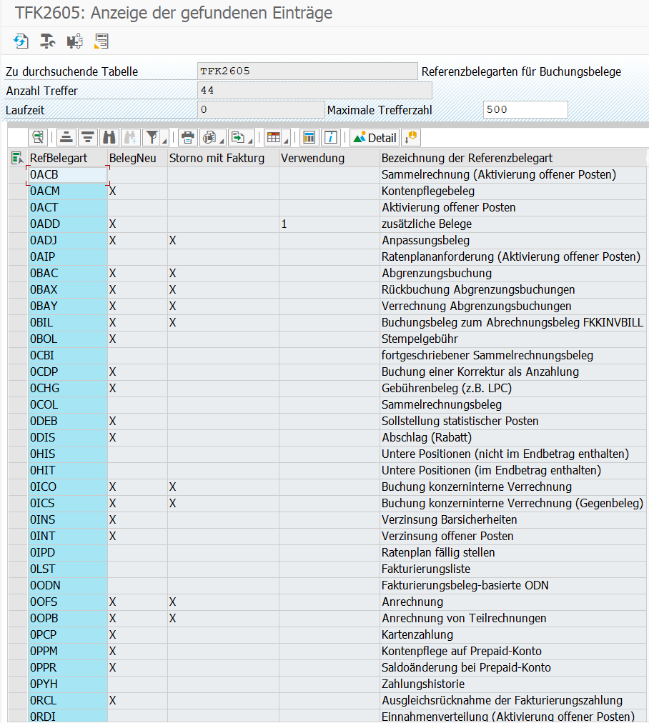 Die Referenzbelegart beschreibt die Bedeutung dieser Belege aus der Sicht der Fakturierung.