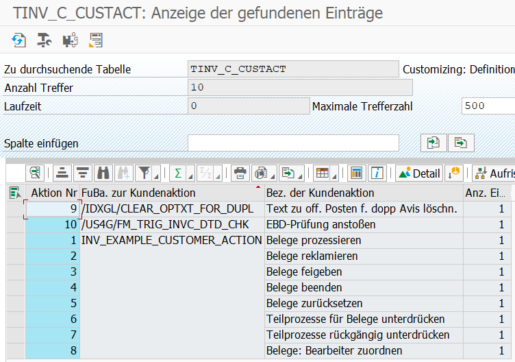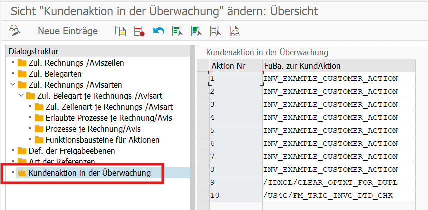 Alle Funktionsbausteine, die Sie hier eingeben, müssen die gleiche Schnittstelle aufweisen wie der FunktionsbausteinINV_EXAMPLE_CUSTOMER_ACTION.
