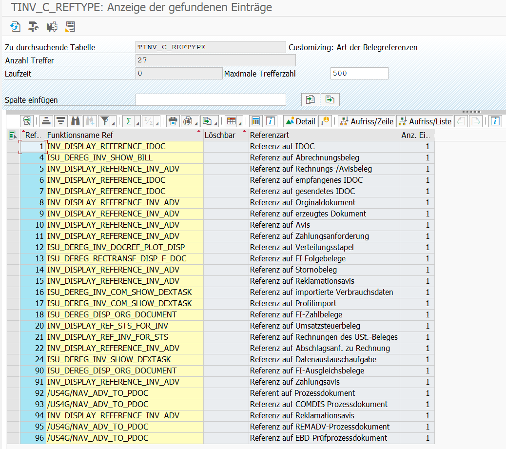 Tabelle TINV_C_REFTYPE - Customizing: Art de Belegreferenz