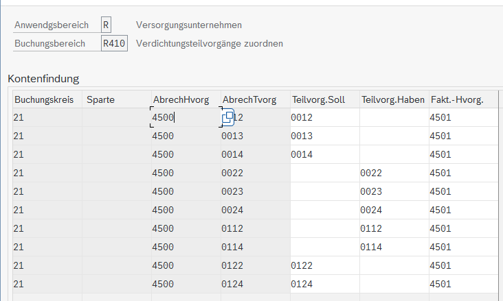 Die Haben und Soll Teilvorgänge sind jeweils nach der Logik 1X = Soll und 2X = Haben im Buchungsbereich R410 benannt.