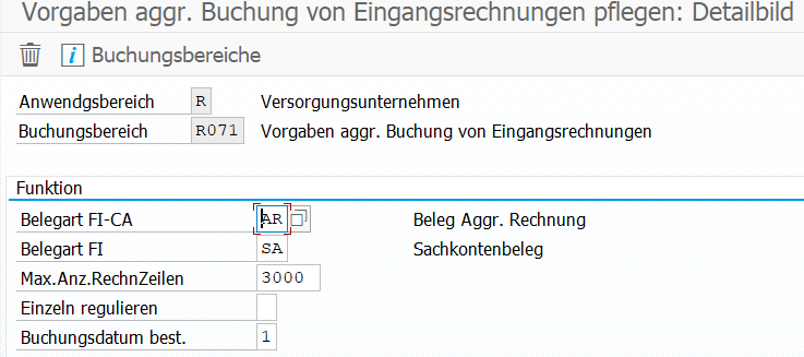Buchungsbereich R071 - Vorgaben aggr. Buchung von Eingangsrechnung